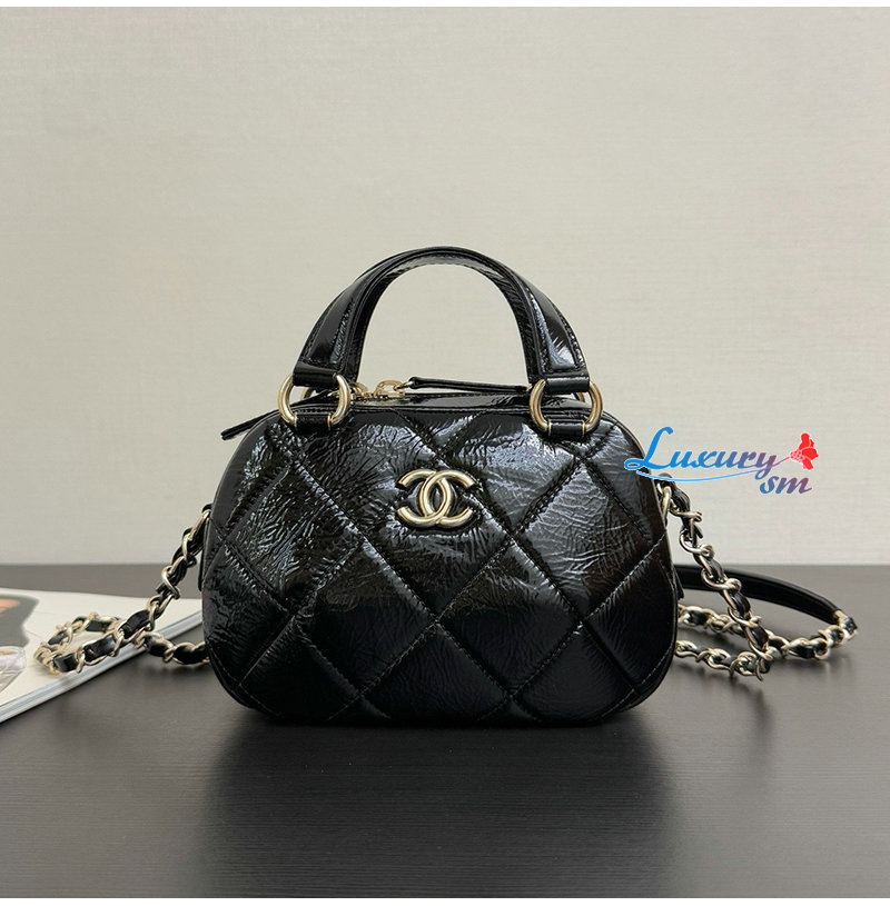 [스페셜오더]CHANEL-AS5536 샤넬 미니 볼링백 샤이니 크럼플드 카프스킨 블랙