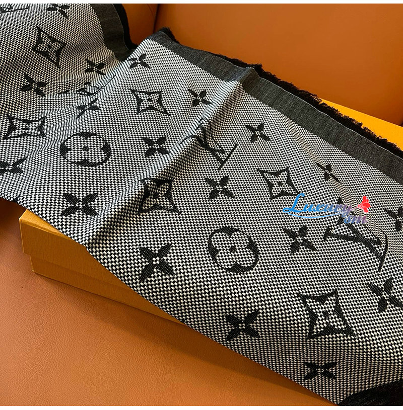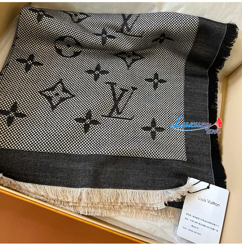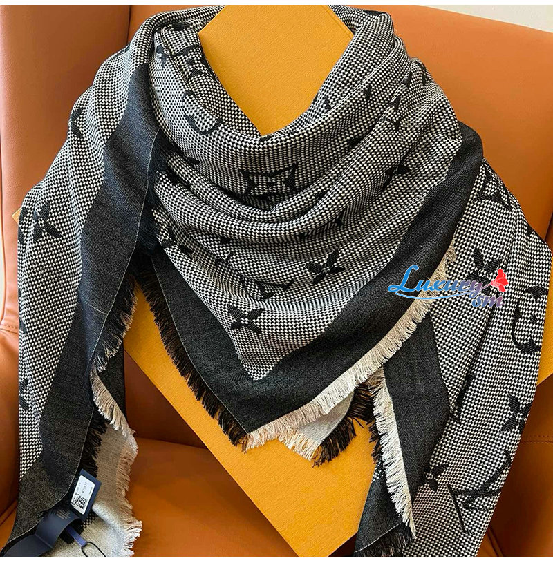 모노그램 숄. 대형 모노그램 패턴과 나테 패브